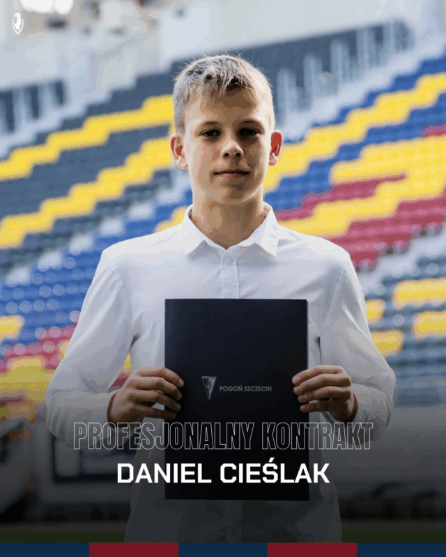 Akademia Pogoni Szczecin poinformowała dzisiaj za pośrednictwem swoich mediów społecznościowych, że Daniel Cieślak podpisał swój pierwszy profesjonalny kontrakt.