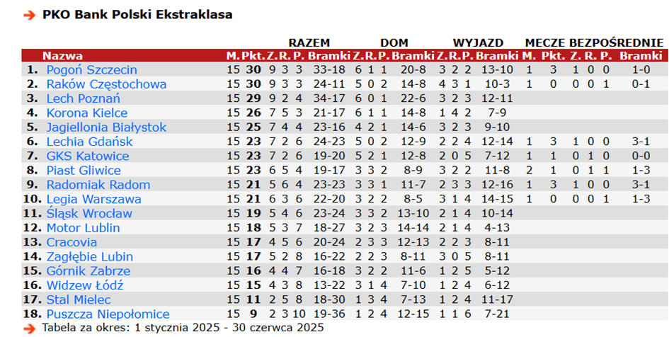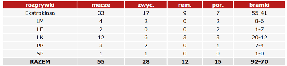 Pogoń pokonała Raków, który także grał wtedy w osłabieniu oraz Puszczę i Motor, ale również zanotowała remis z Lechią i porażkę z Radomiakiem, która odebrała nam szansę na inny układ tabeli.