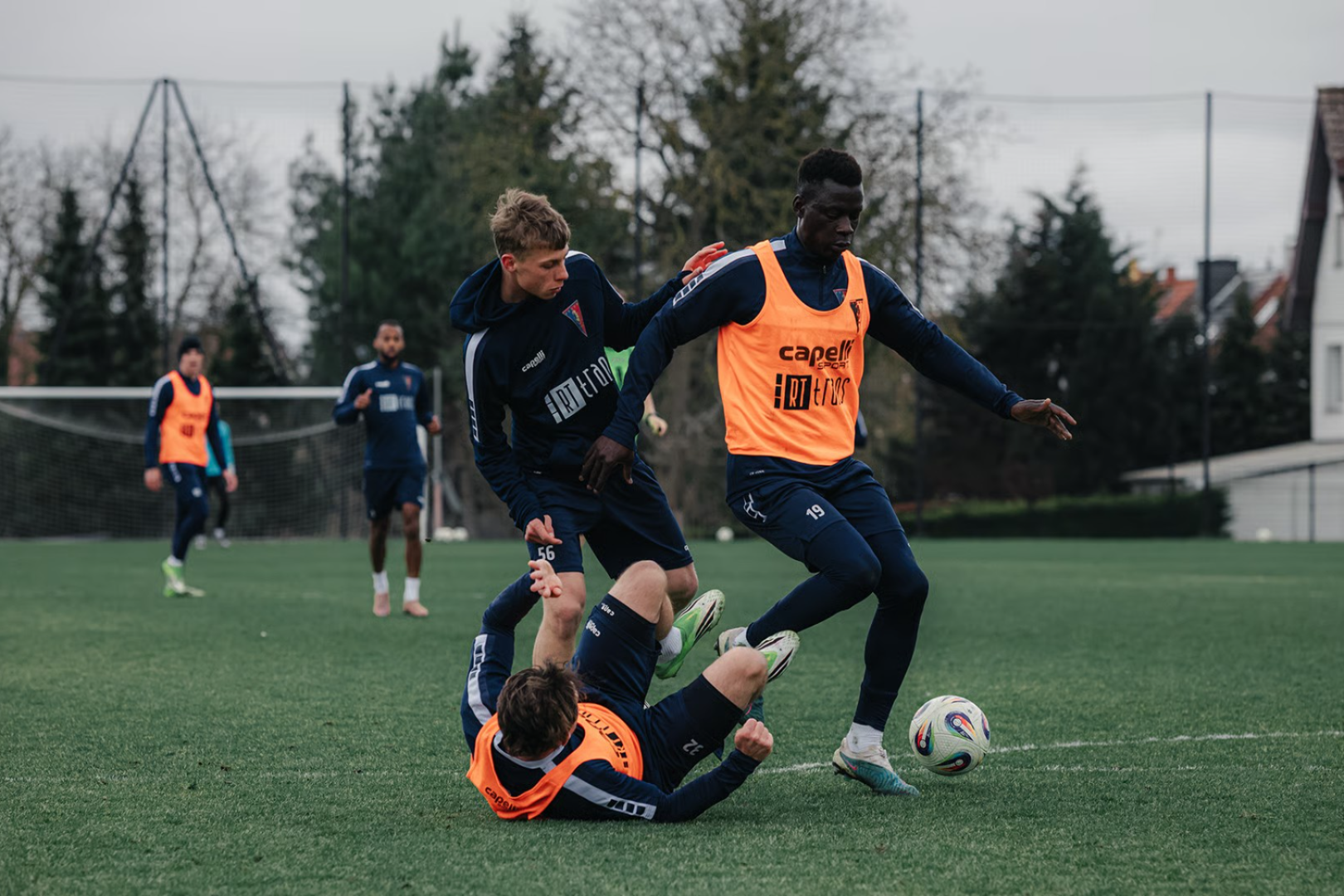 W czwartkowy poranek granatowo-bordowi rozegrali na boisku numer 3 przy Twardowskiego grę wewnętrzną. Zakończyła się ona zwycięstwem drużyny grającej bez znaczników 3:1.