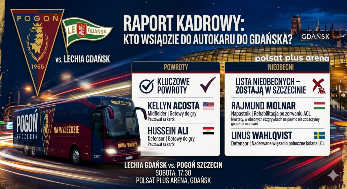 Raport kadrowy przed starciem z Lechią. Kto wsiądzie do autokaru do Gdańska? — Brak komentarzy