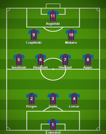 Skoro w Dumie Pomorza nie ma obrońców, bo się wykartkowali, a inni są kontuzjowani, to niech zagra ofensywnie w systemie 1-3-4-2-1. Po przerwie Ława, Grosicki i Juwara niech podkręcą tempo, a Greenwood i Acosta wyczarują coś ze stałych fragmentów gry pod koniec meczu.