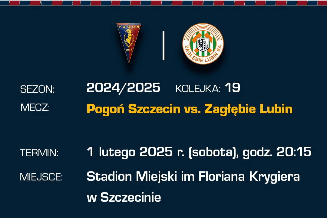 W sobotę, o godzinie 20:15, Pogoń Szczecin rozpoczęła rywalizację w rundzie wiosennej sezonu 2024/2025. W pierwszym meczu w drugiej części obecnych rozgrywek Portowcy zmierzyli się przed własną publicznością z Zagłębiem Lubin w ramach 19. kolejki PKO BP Ekstraklasy. Piłkarze Dumy Pomorza chcieli na przekór wszystkim problemom rozpocząć zmagania w 2025 roku od zwycięstwa oraz trzech punktów. Potwierdzili to swoją postawą na boisku.