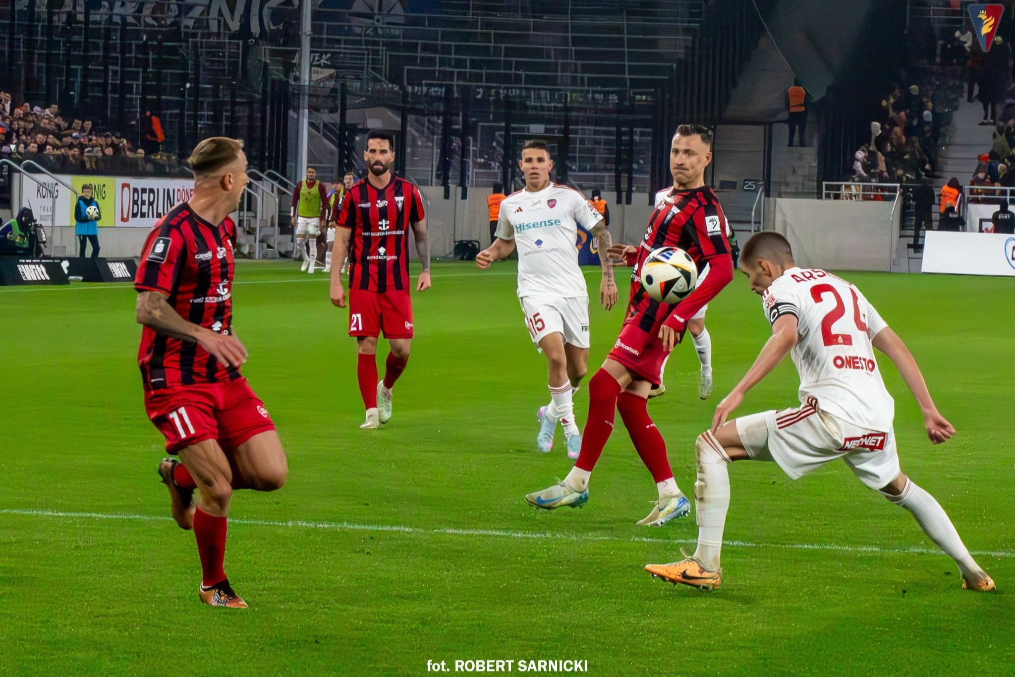 Raków strzela pierwszy po stałym fragmencie, Pogoń odpowiada po kontrze lub błędzie w obronie, a druga połowa bardziej taktyczna niż widowiskowa.